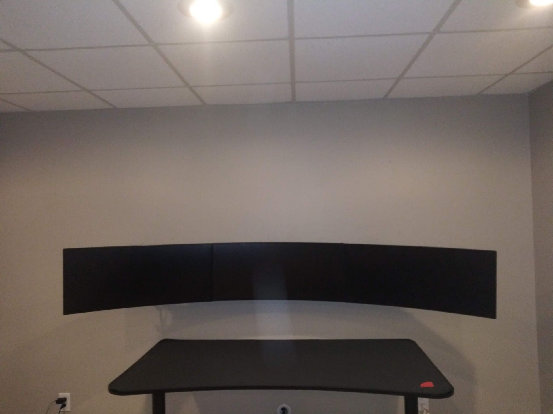 “Double TV setup in basement, both perfectly aligned. Clean power kit.”