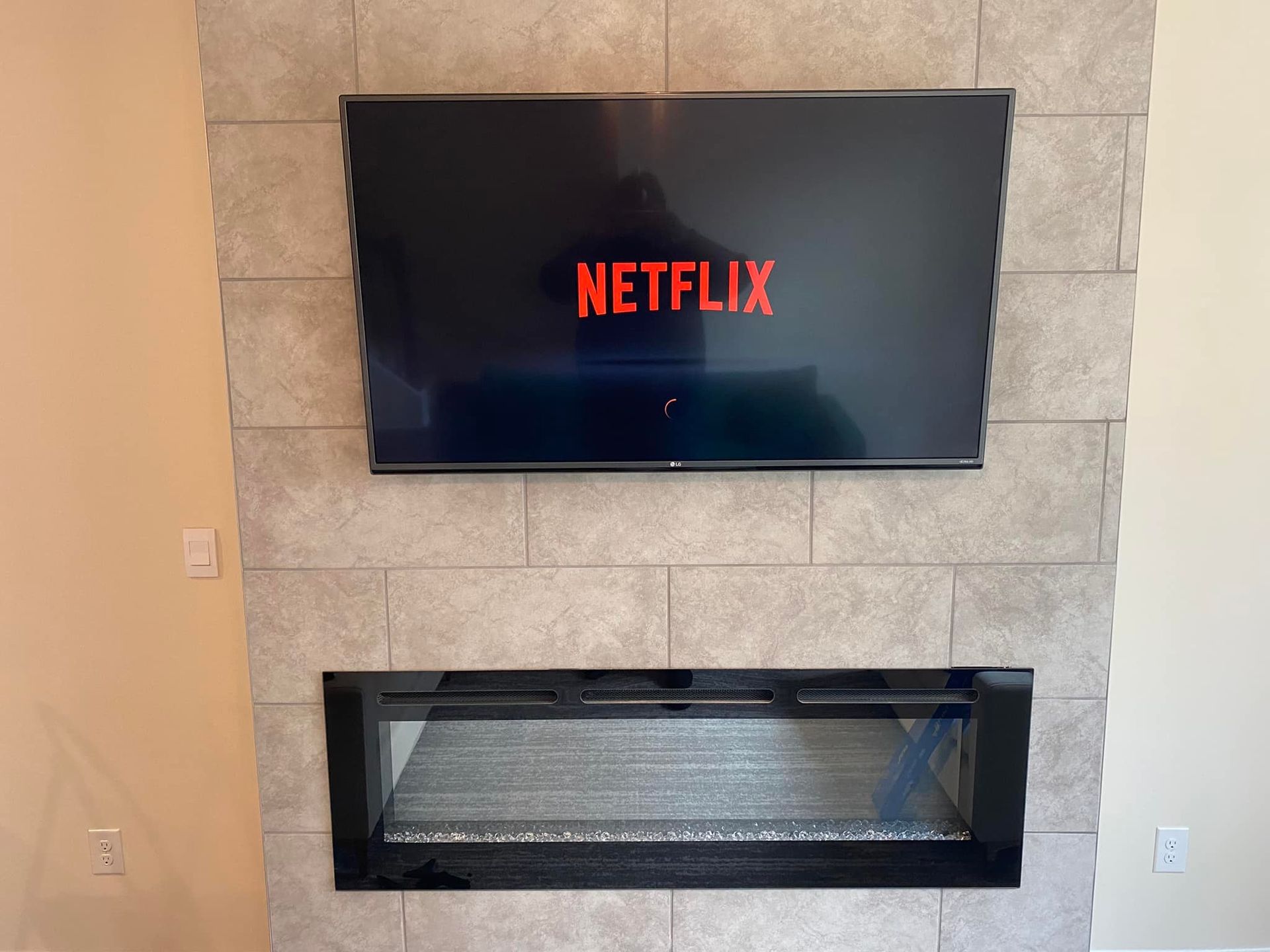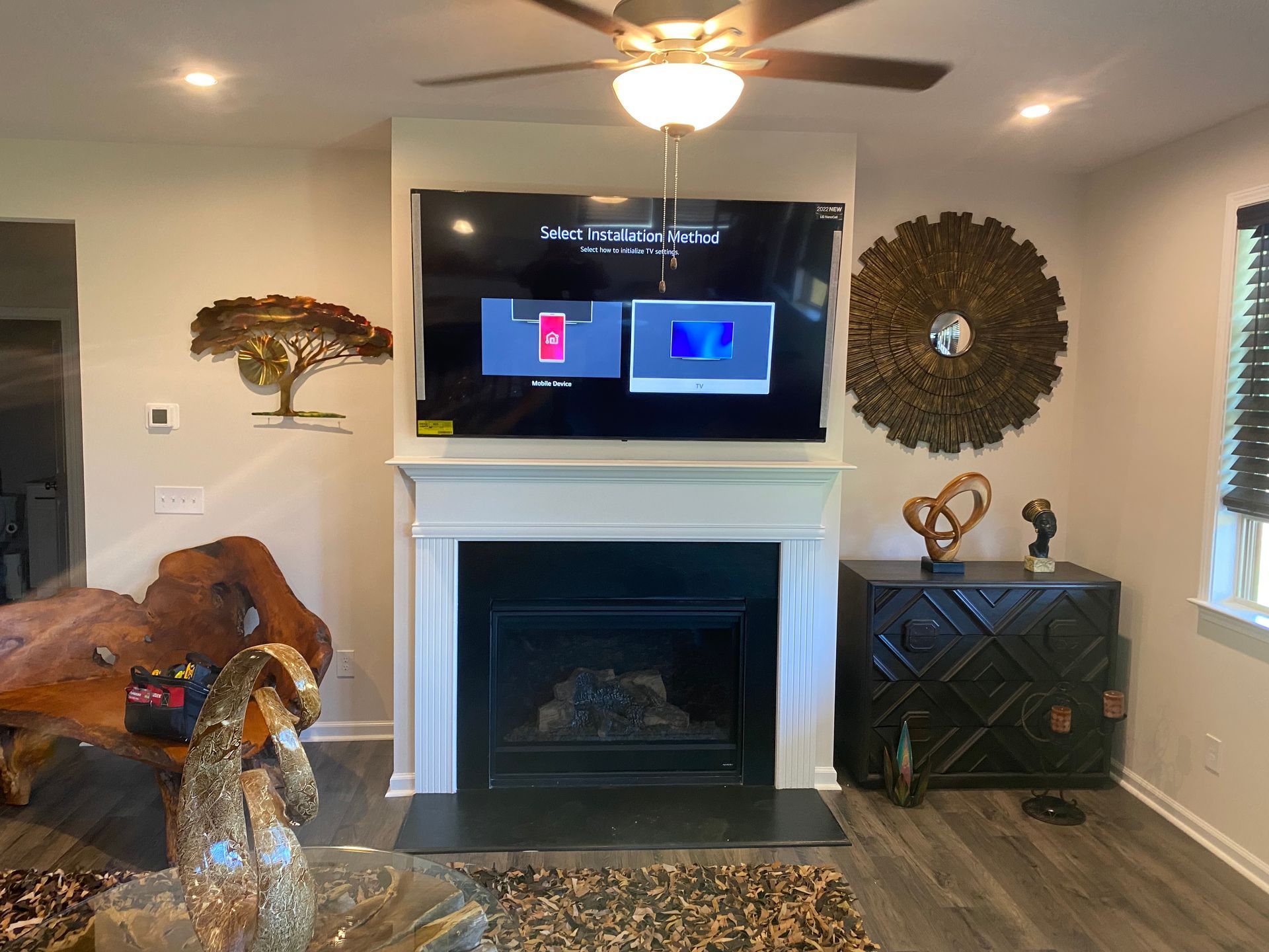 “Above-fireplace with heat shield—safe temps verified by the tech.”